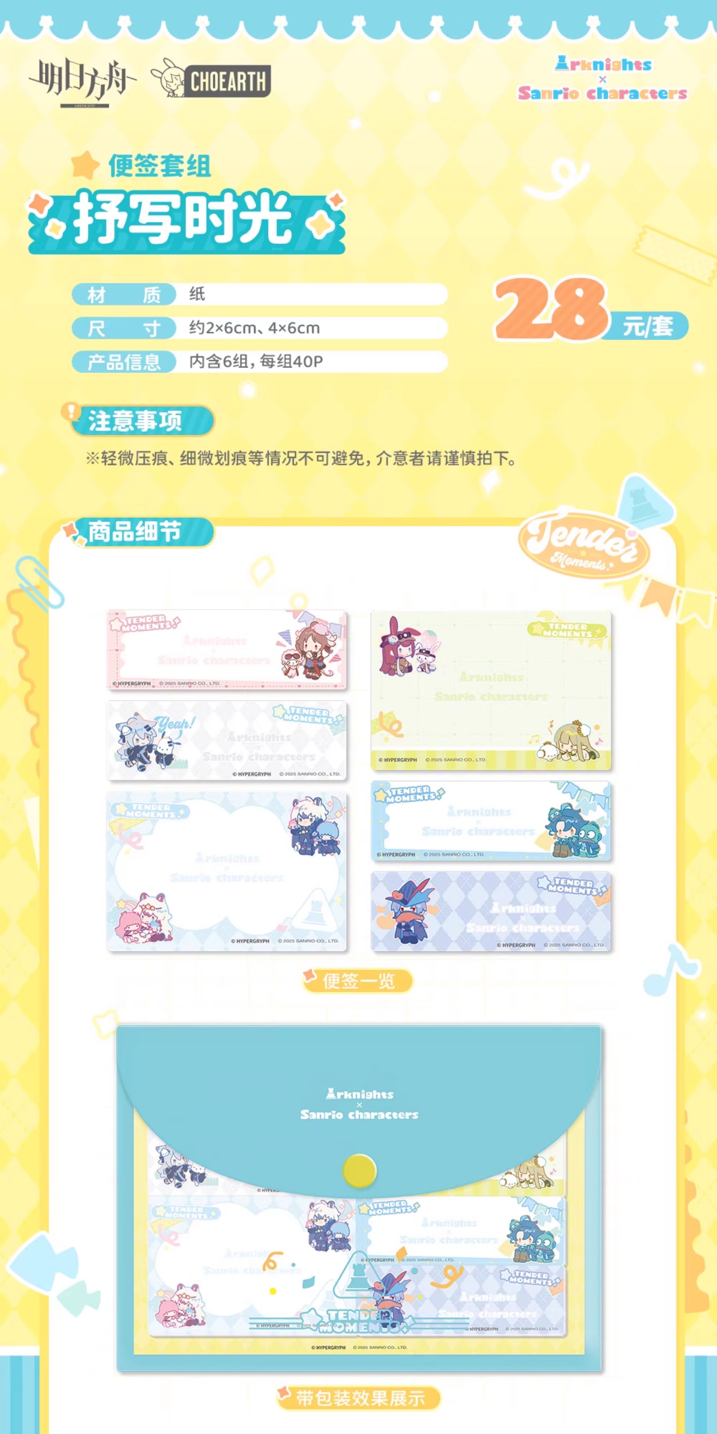 [Pre-order] Arknights x Sanrio characters – Tender Moments – Set Giấy Ghi Chú