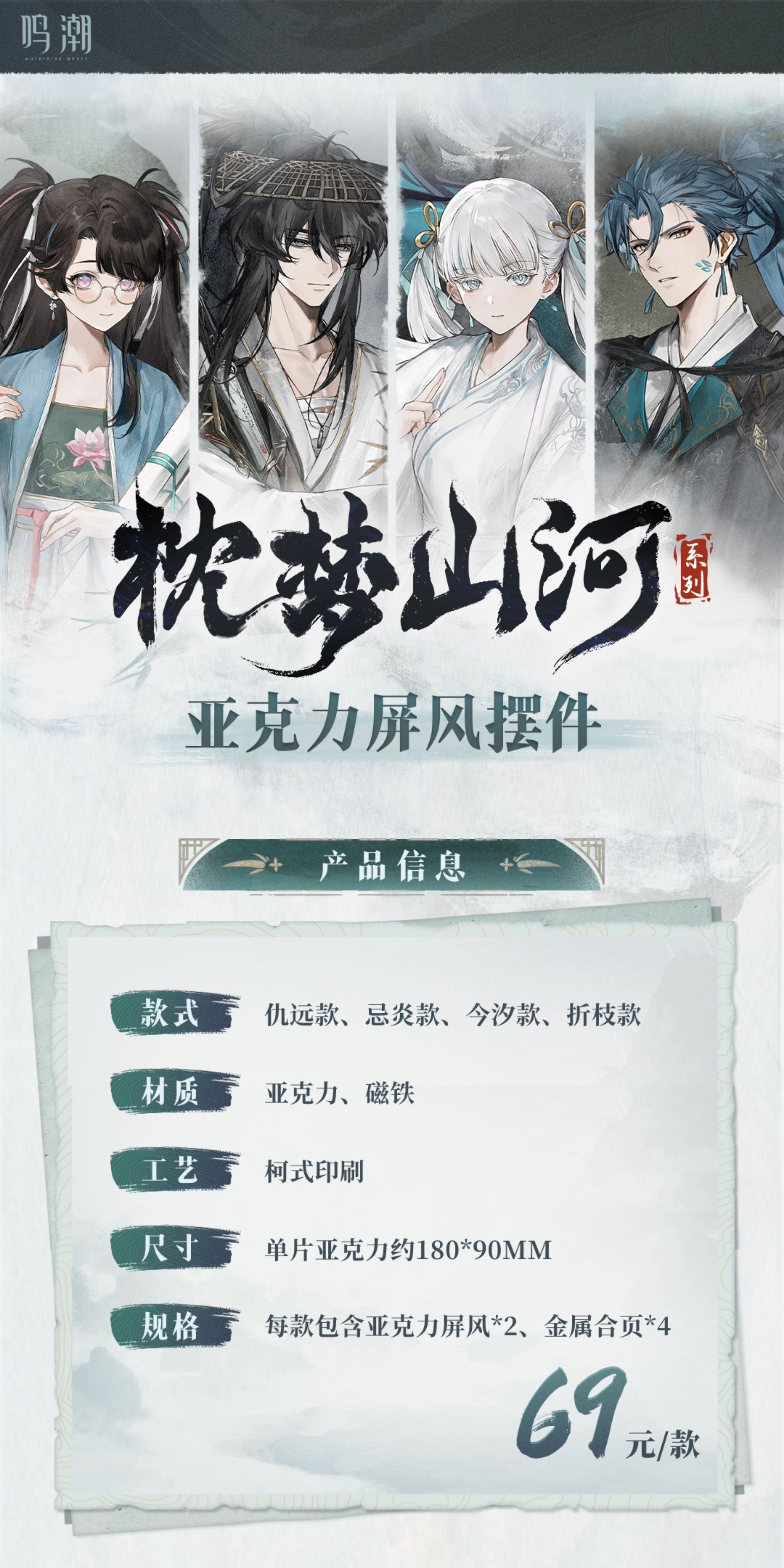 [Pre-order] Wuthering Waves – Dawn Breaks on Dark Tides – Series “Giấc Mộng Sơn Hà” – Standee Tấm Bình Phong Acrylic